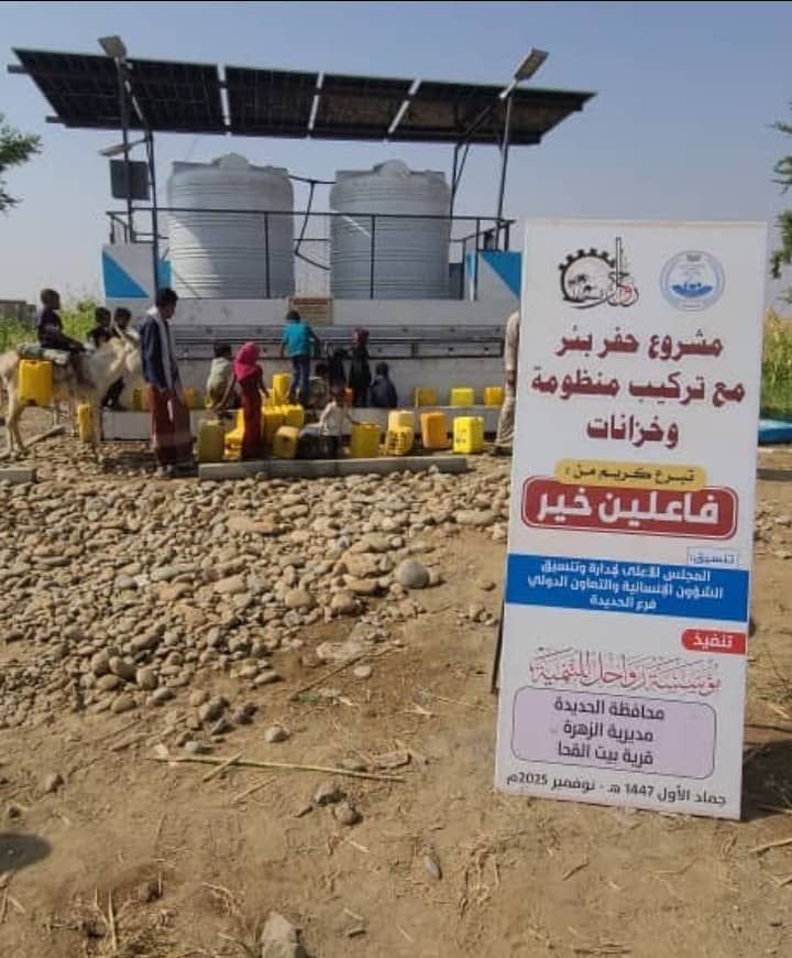 مشروع حفر بئر وتركيب منظومة وخزان – قرية بيت القحا (الزهرة/الحديدة) ضمن جهود مؤسسة رواحل للتنمية لتوفير الميا...